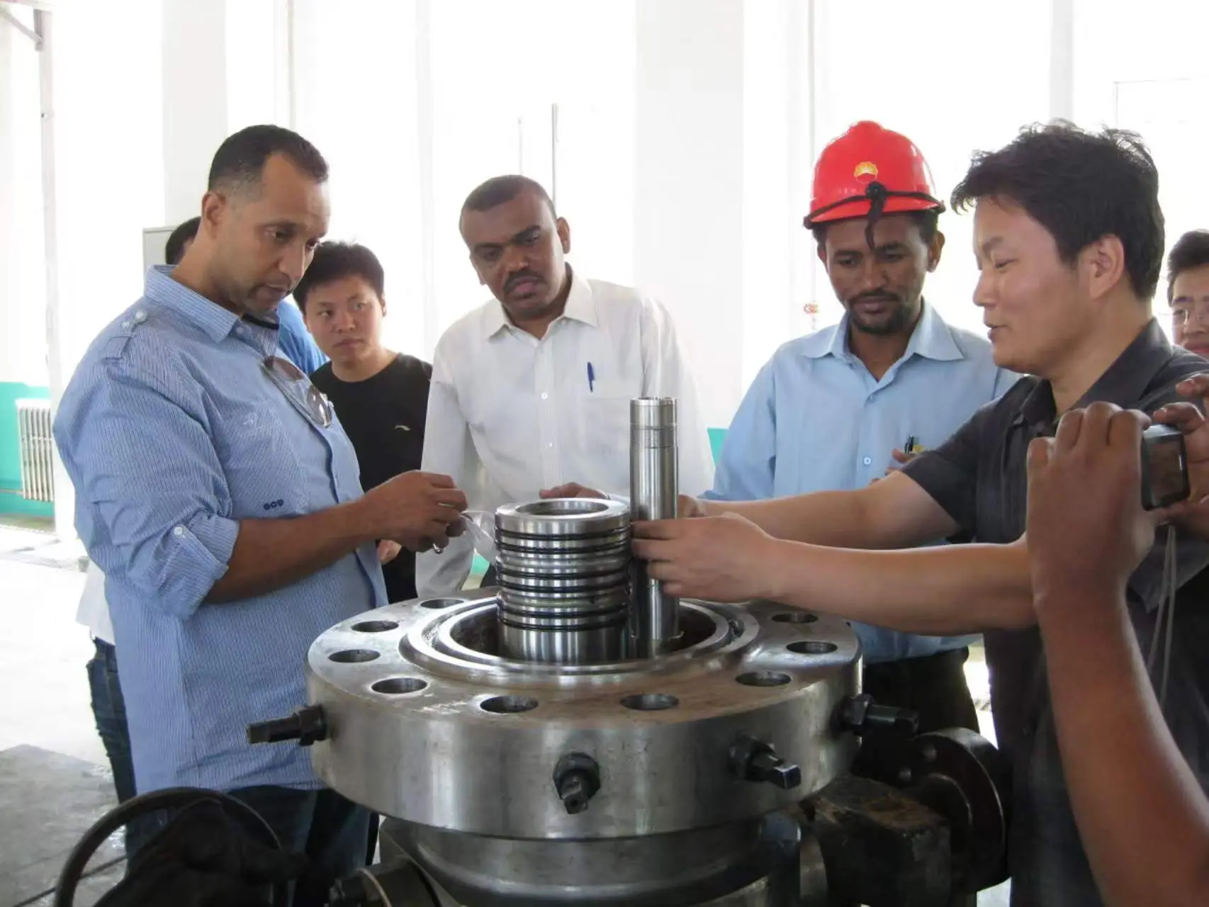 The SUDAN customers came to the factory to inspect the wellhead and jointly studied the structure and sealing performance of the cable penetrator. The picture……
